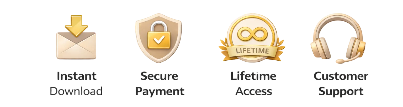 0 2Instantly. After payment you get a download link. No waiting, no shipping. Start in 2 minutes.